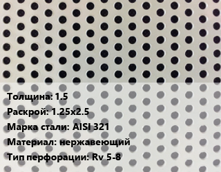 Лист перфорированный 1.5 1.25х2.5 Марка: AISI 321 нержавеющий Rv 5-8