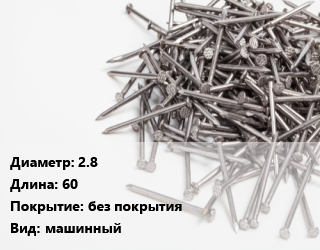 Гвоздь 2.8х60 без покрытия машинный, чертеж 7811-7119, кг цена от 75.63 ₽ / кг, где купить, условия доставки в Новосибирске и Новосибирской области