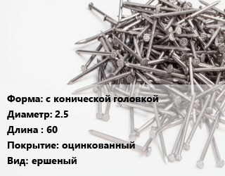 Гвоздь с конической головкой 2.5х60 оцинкованный ершеный