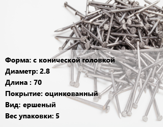Гвоздь с конической головкой 2.8х70 оцинкованный ершеный 5