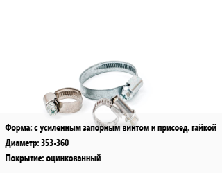 Хомут с усиленным запорным винтом и присоед. гайкой D=353-360 оцинкованный, упаковка цена от 219.5 ₽ / шт, где купить, условия доставки в Новосибирске и Новосибирской области