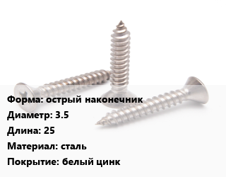 Саморез острый наконечник D=3.5 L=25 сталь белый цинк