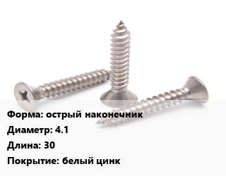 Саморез острый наконечник D=4.1 L=30 белый цинк