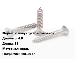Саморез с полукруглой головкой D=4.8 L=35 сталь RAL 8017