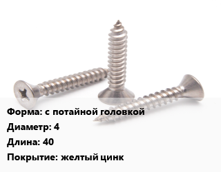 Саморез с потайной головкой D=4 L=40 желтый цинк, упаковка 8000 шт цена от 2 194 ₽ / кг, где купить, условия доставки в Новосибирске и Новосибирской области