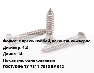 Саморез с пресс-шайбой, наконечник-сверло D=4.2 L=14 оцинкованный ГОСТ: ТУ 7811-7356 BY 012