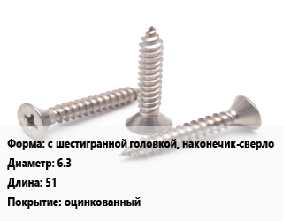 Саморез с шестигранной головкой, наконечик-сверло D=6.3 L=51 оцинкованный, кг, по запросу цена от 1 723 ₽ / кг, где купить, условия доставки в Новосибирске и Новосибирской области