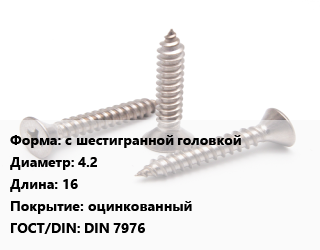 Саморез с шестигранной головкой D=4.2 L=16 оцинкованный ГОСТ: DIN 7976
