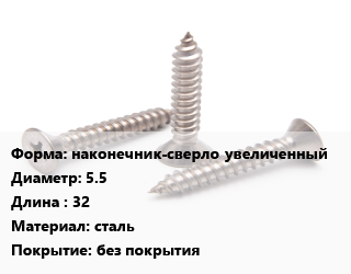 Саморез наконечник-сверло увеличенный D=5.5 L=32 сталь без покрытия