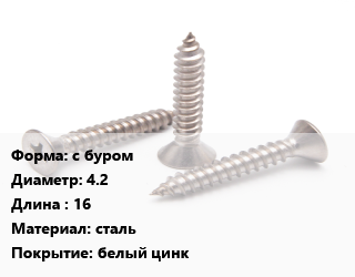 Саморез с буром D=4.2 L=16 сталь белый цинк