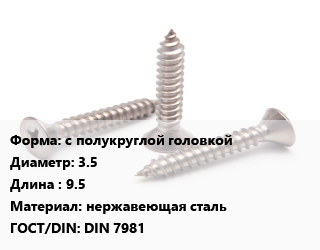 Саморез с полукруглой головкой D=3.5 L=9.5 нержавеющая сталь ГОСТ: DIN 7981