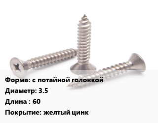 Саморез с потайной головкой D=3.5 L=60 желтый цинк, упаковка 22000 шт цена от 6 986 ₽ / кг, где купить, условия доставки в Новосибирске и Новосибирской области