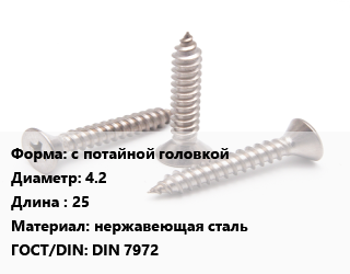 Саморез с потайной головкой D=4.2 L=25 нержавеющая сталь ГОСТ: DIN 7972