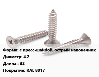 Саморез с пресс-шайбой, острый наконечник D=4.2 L=32 RAL 8017