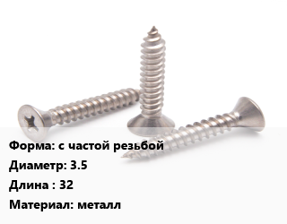 Саморез с частой резьбой D=3.5 L=32 металл, упаковка 15 кг цена от 1 844 ₽ / кг, где купить, условия доставки в Новосибирске и Новосибирской области