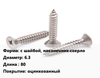 Саморез с шайбой, наконечник-сверло D=6.3 L=80 оцинкованный