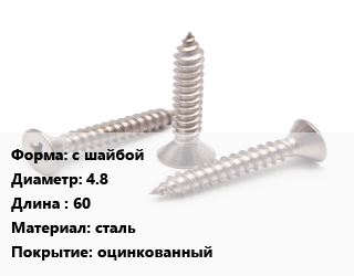 Саморез с шайбой D=4.8 L=60 сталь оцинкованный, упаковка 2000 шт цена от 2 280 ₽ / кг, где купить, условия доставки в Новосибирске и Новосибирской области