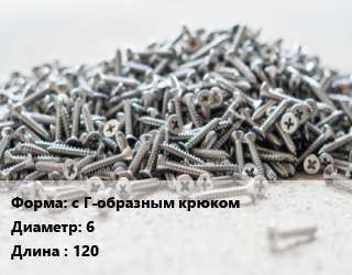 Шуруп с Г-образным крюком 6х120 сталь без покрытия, упаковка 100 шт цена от 525.57 ₽ / кг, где купить, условия доставки в Новосибирске и Новосибирской области