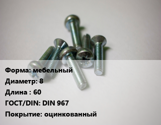 Винт мебельный 8х60 DIN 967 оцинкованный, кг цена от 356.48 ₽ / кг, где купить, условия доставки в Новосибирске и Новосибирской области