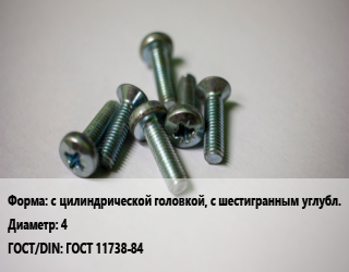 Винт с цилиндрической головкой, с шестигранным углубл. 4 ГОСТ 11738-84