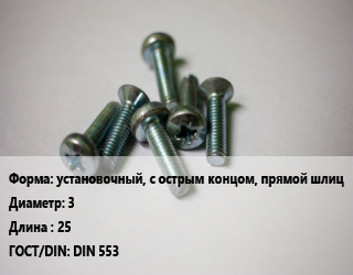 Винт установочный, с острым концом, прямой шлиц 3х25 DIN 553, кг цена от 729 ₽ / кг, где купить, условия доставки в Новосибирске и Новосибирской области