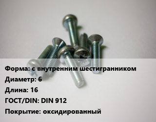 Винт с внутренним шестигранником 6х16 DIN 912 оксидированный, 12.9, цена за шт, кг цена от 10.8 ₽ / кг, где купить, условия доставки в Новосибирске и Новосибирской области