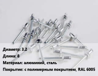 Заклепка 3.2х8 алюминий, сталь с полимерным покрытием, RAL 6005