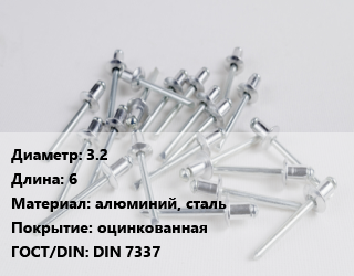 Заклепка 3.2х6 алюминий, сталь оцинкованная ГОСТ: DIN 7337