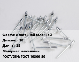 Заклепка с потайной головкой 10х35 алюминий ГОСТ: ГОСТ 10300-80
