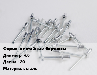 Заклепка с потайным бортиком 4.8х20 сталь, упаковка 1000 шт цена от 1 636 ₽ / шт, где купить, условия доставки в Новосибирске и Новосибирской области