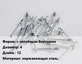 Заклепка с потайным бортиком 4х12 нержавеющая сталь, упаковка 50 шт цена от 45.9 ₽ / шт, где купить, условия доставки в Новосибирске и Новосибирской области