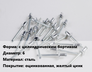 Заклепка с цилиндрическим бортиком 6 сталь оцинкованная, желтый цинк, упаковка 100 шт, с внутренней резьбой цена от 179.19 ₽ / шт, где купить, условия доставки в Новосибирске и Новосибирской области