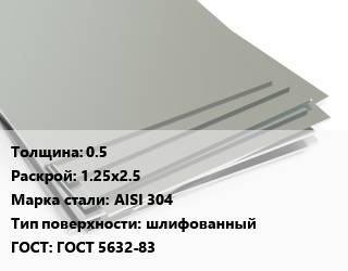 Лист нержавеющий 0.5 1.25х2.5 Сталь: AISI 304 Тип:шлифованный ГОСТ 5632-83, шт, х/к цена от 5 053 ₽ / т, где купить, условия доставки в Новосибирске и Новосибирской области