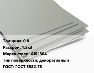 Лист нержавеющий 0.8 1.5х3 Сталь: AISI 304 Тип:декоративный ГОСТ 5582-75, х/к, по запросу,цветной цена от 428 188 ₽ / т, где купить, условия доставки в Новосибирске и Новосибирской области