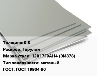 Лист нержавеющий 0.8 1хрулон Сталь: 12Х17Г9АН4 (ЭИ878) Тип:матовый ГОСТ 19904-90, х/к, по запросу цена от 195 861 ₽ / т, где купить, условия доставки в Новосибирске и Новосибирской области