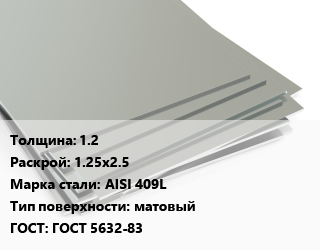 Лист нержавеющий 1.2 1.25х2.5 Сталь: AISI 409L Тип:матовый ГОСТ 5632-83