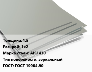 Лист нержавеющий 1.5 1х2 Сталь: AISI 430 Тип:зеркальный ГОСТ 19904-90, шт, х/к цена от 6 138 ₽ / т, где купить, условия доставки в Новосибирске и Новосибирской области