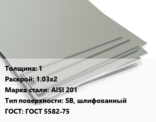 Лист нержавеющий 1 1.03х2 Сталь: AISI 201 Тип:SB, шлифованный ГОСТ 5582-75