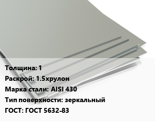 Лист нержавеющий 1 1.5хрулон Сталь: AISI 430 Тип:зеркальный ГОСТ 5632-83 цена от 198 116 ₽ / т, где купить, условия доставки в Новосибирске и Новосибирской области