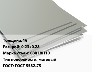 Лист нержавеющий 16 0.23х0.28 Сталь: 08Х18Н10 Тип:матовый ГОСТ 5582-75