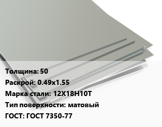 Лист нержавеющий 50 0.49х1.55 Сталь: 12Х18Н10Т Тип:матовый ГОСТ 7350-77