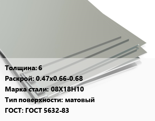 Лист нержавеющий 6 0.47х0.66-0.68 Сталь: 08Х18Н10 Тип:матовый ГОСТ 5632-83
