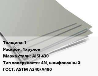 Лист нержавеющий 1 1хрулон Сталь: AISI 430 Тип:4N, шлифованный ASTM A240/A480, в пленке цена от 161 415 ₽ / т, где купить, условия доставки в Новосибирске и Новосибирской области