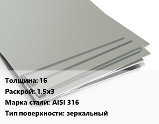 Лист нержавеющий 16 1.5х3 Сталь: AISI 316 Тип:зеркальный