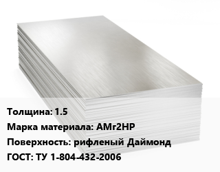 Алюминиевый лист 1.5 Марка: АМг2НР рифленый Даймонд ГОСТ: ТУ 1-804-432-2006